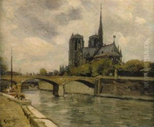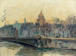 Promeneurs Et Pecheurs Sous Un Pont De Seine