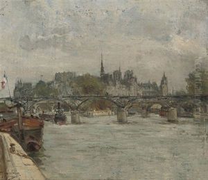 Pariser Stadtansicht Mit Schiffen Auf Der Seine