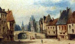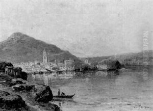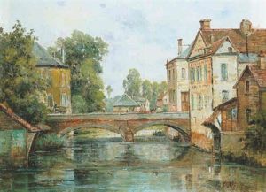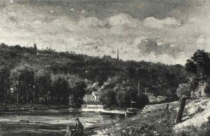 Gebirgslandschaft Mit Einem Fachwerkhaus Am Flus