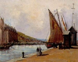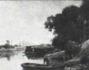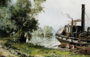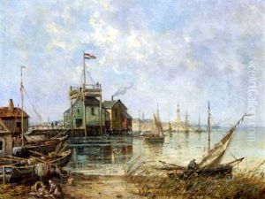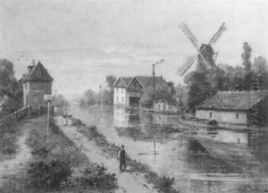 Paysage De Hollande Anime Avec Moulin, Fermiere Et Bateaux Echoues