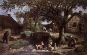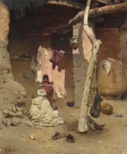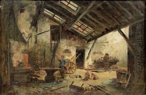Preparing The Wool Oil Painting by Gustave Nicolas Pinel