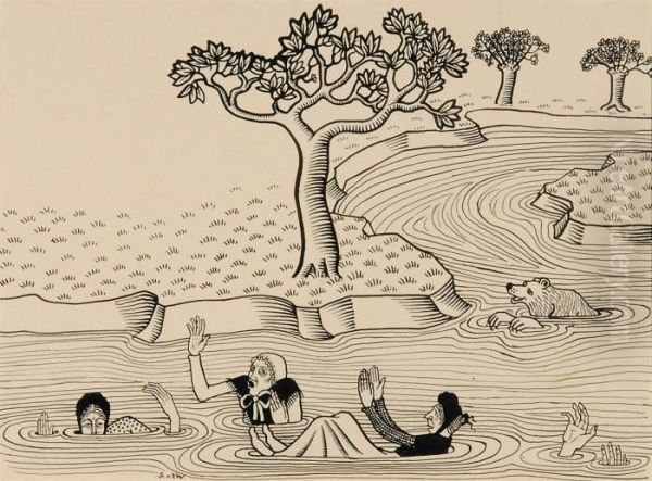 Landschap Met Rivier - Een Troep Wijven In Het Water (1909)
