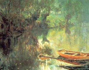Shifting Shadows, Giverny Landscape With Willow Trees Near A River