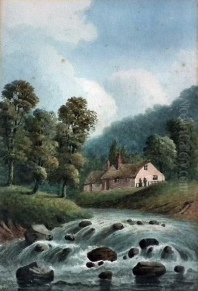 River Landscape With Cottages To Bank
