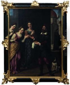 Two Princes Visiting A Hermit In A Forest, Offering Him Wine And Fruit