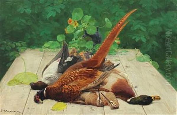 Bring the timeless beauty of Hans Andersen Brendekilde's Still Life With Game into your home with a handmade oil painting reproduction. Carefully recreated on canvas by skilled artists using traditional techniques, this piece captures the delicate brushwork, subtle light, and vibrant color of the original masterpiece. With museum-level quality and rich texture, it brings elegance and artistic depth to any space. Enjoy free shipping and make this masterpiece a part of your personal collection.