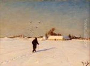 Danischewinterlandschaft Mit Dorf Im Schnee