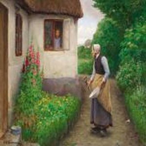 Two Women In Front Of A Cottage On A Calm Summer Day
