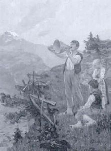 Sennenfamilie Beim Abendlichen Alpsegen