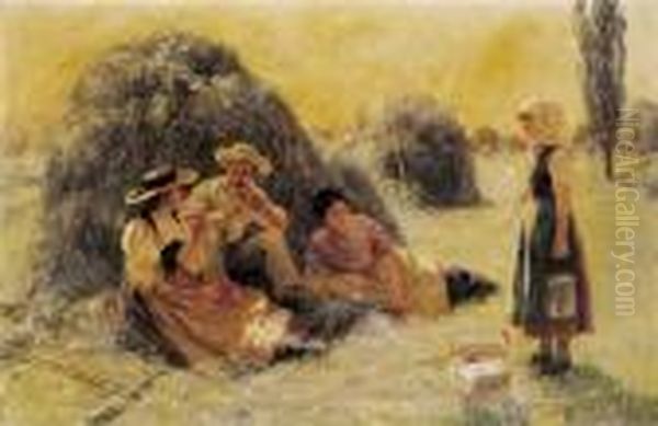 Bring the timeless beauty of Hans Bachmann's Zvieri Bei Der Heuet. into your home with a handmade oil painting reproduction. Carefully recreated on canvas by skilled artists using traditional techniques, this piece captures the delicate brushwork, subtle light, and vibrant color of the original masterpiece. With museum-level quality and rich texture, it brings elegance and artistic depth to any space. Enjoy free shipping and make this masterpiece a part of your personal collection.