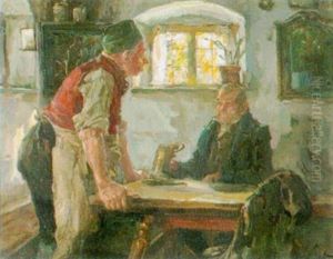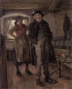 Eheliche Auseinandersetzung Eines Bauernpaares In Der Stube