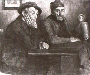 Zwei Alte Zecher, Nachdenklich Am Bauerntisch Sitzend