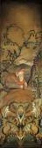 Allegorische Figur mit Lowe und Pfau