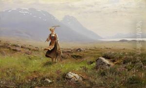 Die Uberfahrt. Bauernpaar In Seinem Boot Auf Einem Norwegischen Fjord