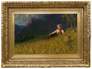 Girl In A Meadow With Snow-capped Mountains Beyond