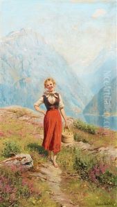 Artist With His Family Boating In Balestrand