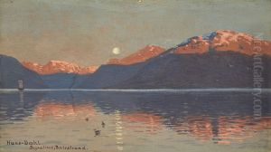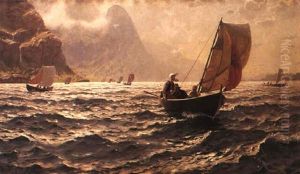 Norskt Fjordlandskap Med Roddbat Och R"d Stuga