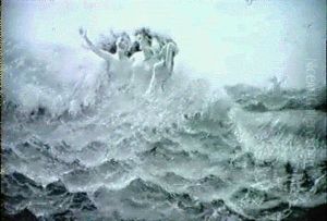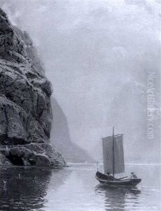 A Fjord Scene With Two Figures In A Sailing Dinghy