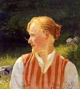 Norsk Fjordlandskab Med Ung Pige, Der Kigger Ud Over Fjorden