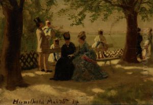 Konstnaren Och Hans Modell I Blommande Fjallandskap