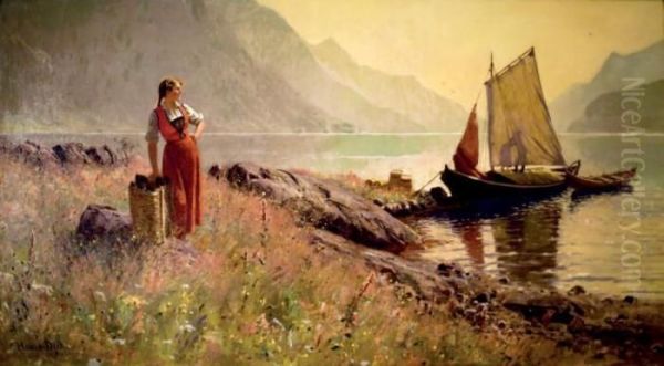 Femme Au Bord D'un Lac Norvegien.