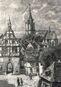 Blick Durch Den Fruhlingswald Auf Ein Stadtchen