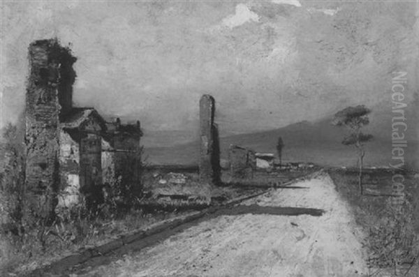 Von Romischen Grabmalern Gesaumte Landstrase Mit Blick Auf Den Vesuv