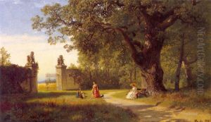 Parklandskap med figurer
