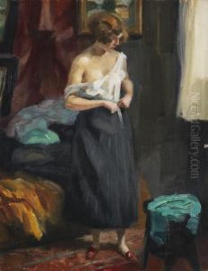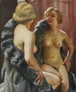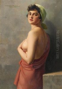 Lieblich Blickende, Sitzenden Nackte Frau In Goldenem Umhang Mit Rotem Edelsteinring