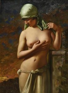 Nackte Schonheit Mit Perlenkette Auf Einem Diwan