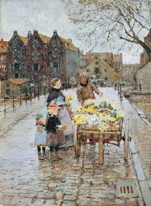 The Flower Market Along The Singel, Amsterdam, With The Muntorren Beyond