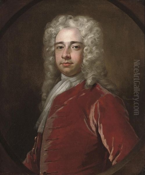 Portrait Of A Gentleman, Half-length, In A Red Velvet Coat, In A Feigned Oval
