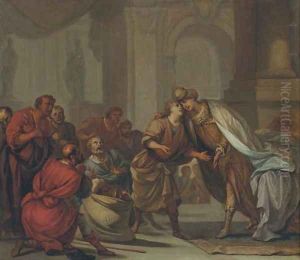 Joseph's Brothers On Their Way To Buy Grain In Egypt In A Wooded Landscape