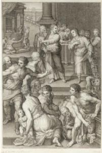 A Church Interior With Christ Driving The Moneychangers From The Temple
