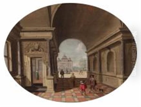 Vue Imaginaire De L"interieur D"un Palais Avec Des Personnages