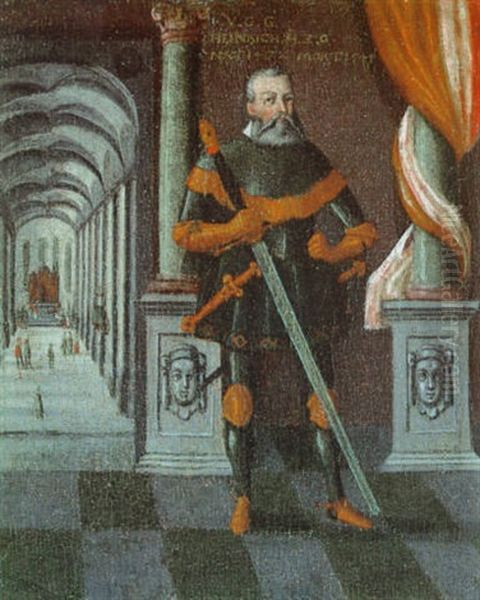 Bildnis Des Herzogs Heinrich Zu Gotha Im Harnisch Mit Einem Bihander In Der Saulenhalle Seines Schlosses