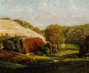 Herbstliche Landschaft Mit Weidenden Kuhen
