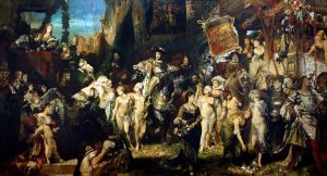 Moderne Amoretten: Kleine Prinzessin Als Mai-konigin Von Knaben Im Triumpf Getragen