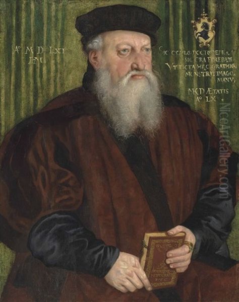 Portrait Of A Martin Klostermair (b. 1502), Aged 60, Half-length, In A Brown Coat And Black Hat, Holding A Book