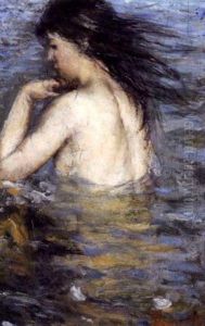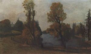 Skogen Ved Bygdoy Bad Med Kolsas I Bakgrunnen Olje Pa Lerret