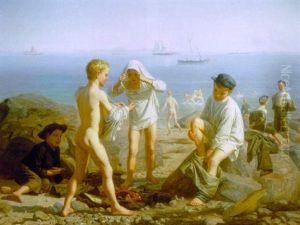 Bring the timeless beauty of Hans Olaf Heyerdahl's Badende Gutter into your home with a handmade oil painting reproduction. Carefully recreated on canvas by skilled artists using traditional techniques, this piece captures the delicate brushwork, subtle light, and vibrant color of the original masterpiece. With museum-level quality and rich texture, it brings elegance and artistic depth to any space. Enjoy free shipping and make this masterpiece a part of your personal collection.