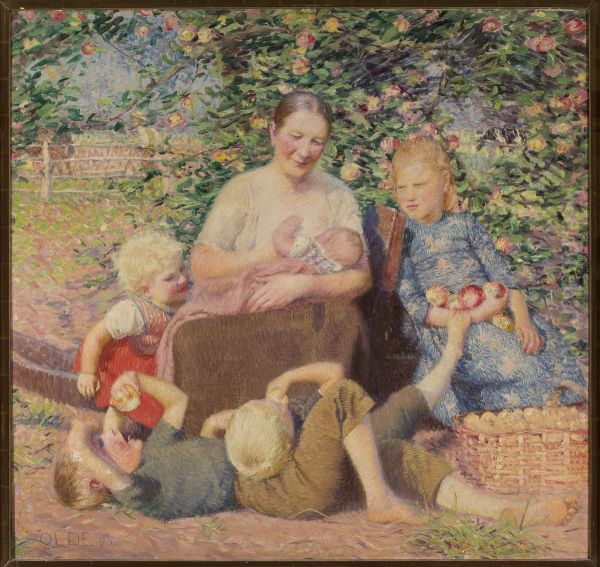Bring the timeless beauty of Hans Olde's A woman with children under an apple tree into your home with a handmade oil painting reproduction. Carefully recreated on canvas by skilled artists using traditional techniques, this piece captures the delicate brushwork, subtle light, and vibrant color of the original masterpiece. With museum-level quality and rich texture, it brings elegance and artistic depth to any space. Enjoy free shipping and make this masterpiece a part of your personal collection.