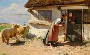 Dansk Sommerlandskab Med Bondepige, Der Vander Koerne