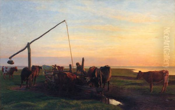 Bring the timeless beauty of Hans Ole Brasen's Cattle watering at sunrise. into your home with a handmade oil painting reproduction. Carefully recreated on canvas by skilled artists using traditional techniques, this piece captures the delicate brushwork, subtle light, and vibrant color of the original masterpiece. With museum-level quality and rich texture, it brings elegance and artistic depth to any space. Enjoy free shipping and make this masterpiece a part of your personal collection.