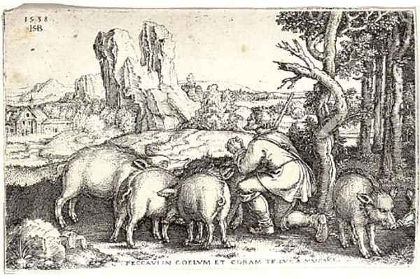 Bring the timeless beauty of Hans Sebald Beham's The Prodigal Son tending the Swine into your home with a handmade oil painting reproduction. Carefully recreated on canvas by skilled artists using traditional techniques, this piece captures the delicate brushwork, subtle light, and vibrant color of the original masterpiece. With museum-level quality and rich texture, it brings elegance and artistic depth to any space. Enjoy free shipping and make this masterpiece a part of your personal collection.