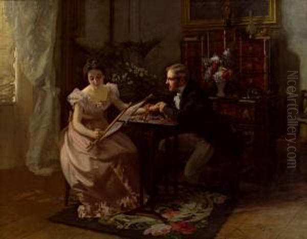 Bring the timeless beauty of Hans Temple's Der Antrag into your home with a handmade oil painting reproduction. Carefully recreated on canvas by skilled artists using traditional techniques, this piece captures the delicate brushwork, subtle light, and vibrant color of the original masterpiece. With museum-level quality and rich texture, it brings elegance and artistic depth to any space. Enjoy free shipping and make this masterpiece a part of your personal collection.