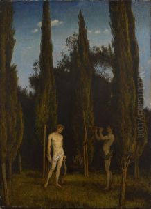 Waldidyll, Junger Faun und Madchen mit Mandoline