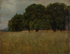 Grain field with deciduous trees