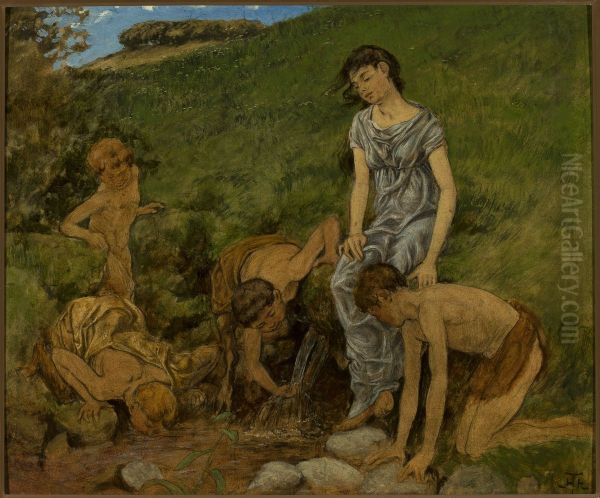 Bring the timeless beauty of Hans Thoma's At the spring well into your home with a handmade oil painting reproduction. Carefully recreated on canvas by skilled artists using traditional techniques, this piece captures the delicate brushwork, subtle light, and vibrant color of the original masterpiece. With museum-level quality and rich texture, it brings elegance and artistic depth to any space. Enjoy free shipping and make this masterpiece a part of your personal collection.