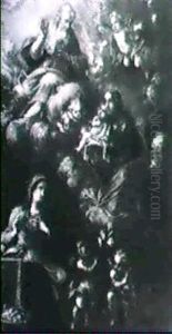 La Vierge Et L'enfant, Avec Dieu Le Pere, Le Saint Esprit Et Des Anges Adores Par Des Saints